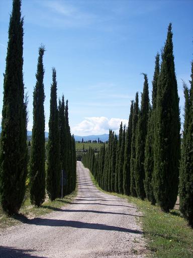 Keywords: cypress cypress trees backlight tuscany treetops italy