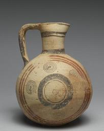 | Keywords: Cypriote - Bichrome Ware Jug with Geometric Design and Concentric Circles - Walters 482347 - Right Side.jpg This example of the popular pinched-spout jug is decorated with red paint on a pale background and is called Bichrome Ware There were two distinct styles of this ceramic ware in Cyprus at this time the rectilinear which features triangles diamonds and rectangles was common in the eastern and southern regions of the island; the circle style shown here with groups of concentric circles was found mostly in the western and northern areas century 7 BC terracotta cm 19 3 accession number 48 2347 15367 William H Smith Alexandria VA Walters Art Museum 1973 by purchase Museum purchase with funds provided by the S A P Fund 1973 place of origin Cyprus Walters Art Museum license Ancient Greek pottery in the Walters Art Museum Ancient Cyprus Media contributed by the Walters Art Museum needs category review Cypriotic bichrome ware |
