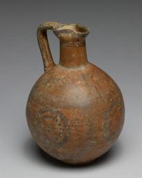 | Keywords: Cypriote - Black-on-Red Ware Jug with Geometric Design - Walters 482341 - Three Quarter Right.jpg Small and portable these jugs have been found throughout the lands surrounding Cyprus Called Black-on-Red Ware this attractive ceramic type comprises mostly small jugs The red-brown slip has a polished lustrous surface with simple geometric designs painted in black The decoration of this pottery follows the circle style of the Bichrome Ware jugs century 7 BC terracotta cm 21 accession number 48 2341 2957 William H Smith Alexandria VA Walters Art Museum 1973 by purchase Museum purchase with funds provided by the S A P Fund 1973 place of origin Cyprus Walters Art Museum license Ancient Greek pottery in the Walters Art Museum Ancient Cyprus Media contributed by the Walters Art Museum needs category review Objects on gray background |