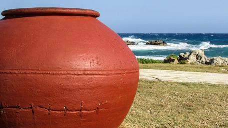 Keywords: cyprus ayia napa nissi beach jar red container traditional pottery