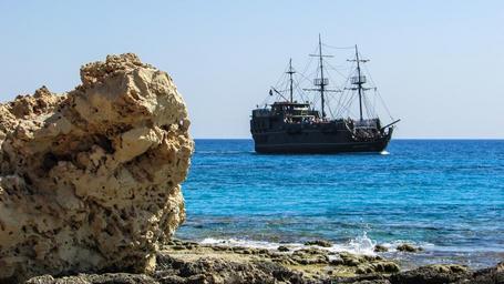 Keywords: cyprus ayia napa rocky coast cruise ship pirate ship tourism leisure