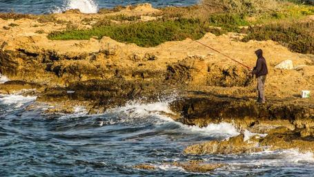 Keywords: cyprus kappari rocky coast fisherman