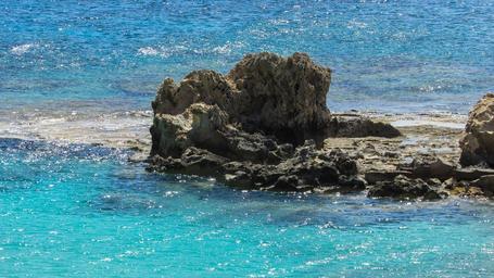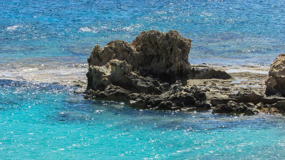 Keywords: cyprus rocky coast sea turquoise sunlight blue sunny noon