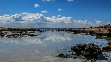Keywords: cyprus rocky coast sea sky clouds reflection horizon coastline