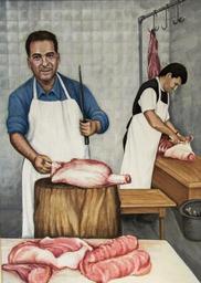 Keywords: cyprus traditional butchery painting meat food shop dherynia folklore museum