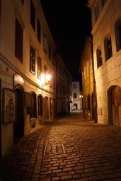 Keywords: czech krumlov czech republic at night old town alley paving unesco street