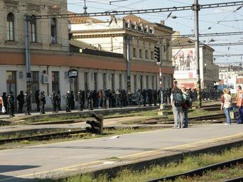 Keywords: Czech police 11.JPG Czech police Brno own 2008-04-28 Lukáš Malý uvolňuji dílo Police action in Brno hlavní nádraží Baník Ostrava - 1 FC Brno 28-th April 2008
