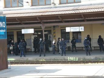Keywords: Czech police 12.JPG Czech police Brno own 2008-04-28 Lukáš Malý uvolňuji dílo Police action in Brno hlavní nádraží Baník Ostrava - 1 FC Brno 28-th April 2008