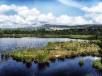 Keywords: czech republic landscape scenic mountains forest trees lake water sky clouds