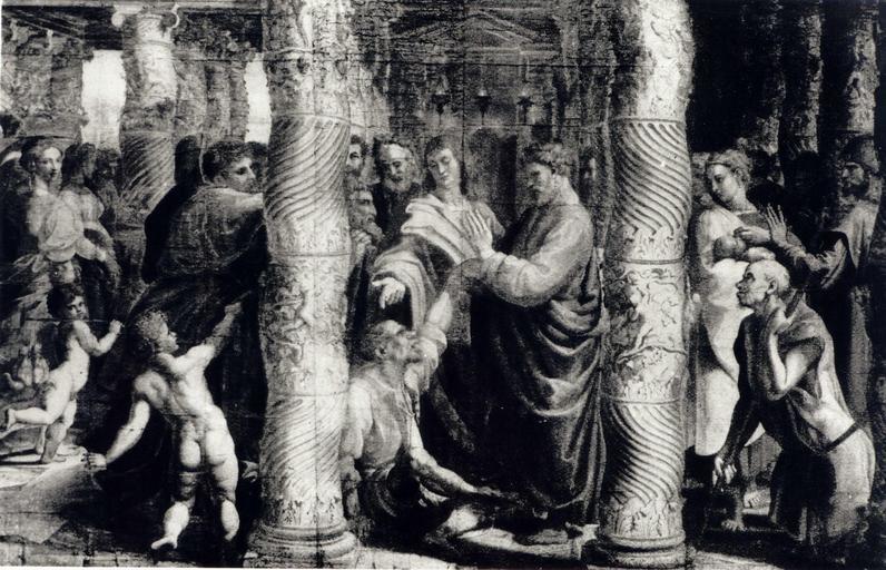 | Keywords: Czechowicz Święci Paweł i Jan.JPG St Paul and St John healing a cripple Święci Paweł i Jan uzdrawiający kalekę Creator Szymon Czechowicz ca 1716-1725 oil canvas cm 60 82 Catalogue of paintings removed from Poland by the German occupation authorities during the years 1939-1945 Polish paintings / comp Władysław Tomkiewicz ; Ministry of Culture and Art Warsaw 1950 Editor Ministry of Culture and Art See also http //kolekcje mkidn gov pl/ Department of National Heritage Wartime losses an official webpage of Polish Ministry of Culture Art and National Heritage PD-Art PD-old-100 Szymon Czechowicz 18th-century Polish paintings lost in Poland during World War II Paintings of Saint Paul Paintings of Saint John the Evangelist 18th-century oil on canvas paintings 1725 paintings 1710s paintings 18th-century paintings location missing |