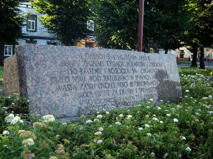 | Keywords: Częstochowa 4IX05 11.JPG Częstochowa Poland John Paul II Square Memorial stone reading On the 3-4 of September 1939 the Germans executed 300 innocent hostages at this place after herding thousands of Poles and Jews into the Cathedral and the Church of St Zygmunt including other locations in the city Let us pray for the repose of their souls own Reytan Reytan Stare Miasto Częstochowa Plaques in Częstochowa | ||||