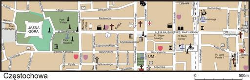 | Keywords: CzÄ™stochowa-mapa-centrum.png <table width 100 border 1 > <tr> <td colspan 2 > <div align center ><u>Legenda</u></div> </td> </tr> <tr> <td colspan 2 height 24 > <div align center ><b>Ogólne</b></div> </td> </tr> <tr> <td>24px</td> <td>zabudowania</td> </tr> <tr> <td>24px</td> <td>parki skwery</td> </tr> <tr> <td>24px</td> <td>łąki</td> </tr> <tr> <td colspan 2 > <div align center ><b>Kultura</b></div> </td> </tr> <tr> <td>24px</td> <td>ważniejsze galerie <br> Miejska Galeria Sztuki - al NMP</td> </tr> <tr> <td>24px</td> <td>ważniejsze oÅ›rodki promocji kultury <br> OÅ›rodek Promocji Kultury žGaude Mater - ul DÄ…browskiego</td> </tr> <tr> <td>24px</td> <td> <p>kina <br> OÅ›rodek Kultury Filmowej - al NMP<br> Cinema City žWolność - al T KoÅ›ciuszki</p> </td> </tr> <tr> <td>24px</td> <td>teatry <br> Teatr Dramatyczny im A Mickiewicza - róg ul ul Jasnogórskiej i J KiliÅ„skiego</td> </tr> <tr> <td>24px</td> <td>filharmonie <br> Filharmonia CzÄ™stochowska - róg ul ul T W Wilsona i G Garibaldiego</td> </tr> <tr> <td colspan 2 > <div align center ><b>Edukacja</b></div> </td> </tr> <tr> <td>24px </td> <td>szkoÅ‚y Å›rednie <br> Liceum Plastyczne im J Malczewskiego - ul K PuÅ‚askiego<br> IV LO im H Sienkiwicza - al NMP<br> I LO im J SÅ‚owackiego - al T KoÅ›ciuszki<br> V LO im A Mickiewicza - ul Krakowska<br> Zespół Szkół Elektroniczno-Mechanicznych - na wschód od archikatedry faktycznie ul Targowa </td> </tr> <tr> <td>24px </td> <td>szkoÅ‚y wyższe <br> Akademia Polonijna - róg ul ul Siedmiu Kamienic i PuÅ‚askiego<br> Akademia Jana DÅ‚ugosza - ul J Waszyngtona</td> </tr> <tr> <td>24px </td> <td>muzea <br> Muzeum CzÄ™stochowskie - wszystkie obiekty zaznaczone</td> </tr> <tr> <td>24px </td> <td>biblioteki pominiÄ™to filie <br> Biblioteka Miejska - al NMP</td> </tr> <tr> <td>24px </td> <td>inne jednostki <br> obserwatorium astronomiczne - Park St Staszica</td> </tr> <tr> <td colspan 2 > <div align center ><b>Turystyka</b></div> </td> </tr> <tr> <td>24px</td> <td>informacja turystyczna <br> punkt informacji turystycznej UrzÄ™du Miasta - al NMP</td> </tr> <tr> <td>24px</td> <td>zabytkowe koÅ›cioÅ‚y rzymskokatolickie <br> pw NajÅ›wiÄ™tszego Imienia Maryi - al NMP koÅ‚o LO Sienkiewicza<br> pw Å›w Jakuba - otoczony al NMP i ul ul J H DÄ…browskiego RacÅ‚awickÄ… KiliÅ„skiego<br> pw Å›w Zygmunta - pl I DaszyÅ„skiego<br> Archikatedra pw ÅšwiÄ™tej Rodziny - pl Jana PawÅ‚a II ul ul Krakowska i Ogrodowa</td> </tr> <tr> <td>24px</td> <td>koÅ›cioÅ‚y rzymskokatolickie</td> </tr> <tr> <td>24px</td> <td>kaplice</td> </tr> <tr> <td>24px</td> <td>cerkwie</td> </tr> <tr> <td>24px</td> <td>zabytkowe koÅ›cioÅ‚y protestanckie <br> pw WniebowstÄ…pienia PaÅ„skiego ewengelicko-augsburski - ul M Kopernika </td> </tr> <tr> <td>24px</td> <td>pomniki</td> </tr> <tr> <td>24px</td> <td>Miejsca PamiÄ™ci Narodowej</td> </tr> <tr> <td>24px</td> <td>inne atrakcje turystyczne <br> Dom BiegaÅ„skiego - vis-à -vis stacji PKP<br> Dom Frankego - al NMP</td> </tr> <tr> <td colspan 2 > <div align center ><b>Varia</b></div> </td> </tr> <tr> <td>24px</td> <td>Stacje pogotowia ratunkowego <br> Stacja Pogotowia Ratunkowego - ul J KiliÅ„skiego</td> </tr> <tr> <td>24px</td> <td>jednostki Straży Pożarnej</td> </tr> <tr> <td>24px</td> <td>urzÄ™dy pocztowe</td> </tr> <tr> <td>24px</td> <td>fontanny</td> </tr> <td colspan 2 > <div align center ><b>Skróty literowe</b></div> </td> </tr> <tr> <td>UM</td> <td>UrzÄ…d Miasta</td> </tr> <tr> <td>PKP</td> <td>stacja PKP CzÄ™stochowa Osobowa</td> </tr> </table> own Reytan Reytan Maps of CzÄ™stochowa |