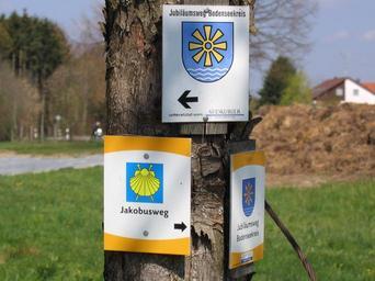 | Keywords: D-BW-Tettnang - Fünfehrlen, Wanderwege.jpg en Germany - Baden-Württemberg - Bodenseekreis - Tettnang sign posts Jubiläumsweg Bodenseekreis and Jakobusweg Way of Saint James Jubiläumsweg Bodenseekreis und Jakobusweg own ANKAWà 2007-04-10 Jubiläumsweg Bodenseekreis-Etappe2 Hiking and footpath signs in Tettnang Oberschwäbischer Jakobsweg Tettnang Signs of Way of Saint James in Baden-Württemberg Tettnang __HIDDENCAT__ Photos by User ANKAWà | ||||
