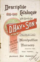 | Keywords: text sign writing signboard Shows arrangement of assorted styles of text, and some decorative elements (scroll, circular cut-out pattern). Quantity: 1 colour photo-mechanical print(s) on front cover of sales catalogue.. Physical Description: Offset lithograph, 214 x 140 mm. Provenance: Acquired in 1980. D Hay & Son, Nurserymen :Descriptive catalogue 1899-1900, with novelty list. Montpellier Nursery near Parnell, Auckland, New Zealand. [Front cover]. 1899.. [Ephemera and horticulture sales catalogues issued by New Zealand plant nurseries, 1870-1899].. Ref: Eph-A-HORTICULTURE-1899-01-front. Alexander Turnbull Library, Wellington, New Zealand. natlib.govt.nz/records/23029569 Shows arrangement of assorted styles of text, and some decorative elements (scroll, circular cut-out pattern). Quantity: 1 colour photo-mechanical print(s) on front cover of sales catalogue.. Physical Description: Offset lithograph, 214 x 140 mm. Provenance: Acquired in 1980. D Hay & Son, Nurserymen :Descriptive catalogue 1899-1900, with novelty list. Montpellier Nursery near Parnell, Auckland, New Zealand. [Front cover]. 1899.. [Ephemera and horticulture sales catalogues issued by New Zealand plant nurseries, 1870-1899].. Ref: Eph-A-HORTICULTURE-1899-01-front. Alexander Turnbull Library, Wellington, New Zealand. natlib.govt.nz/records/23029569 |