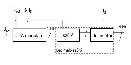Keywords: D-szig b.svg en main functional blocks of a delta-sigma analog-to-digital converter hu Delta-szigma AD átalakító fő funkcionális egységei és kapcsolatuk Own Kmiki87 2009-06-20 Analogue-digital conversion Functional block diagrams