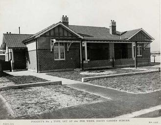 | Keywords: archives state records nsw staterecordsnsw newsouthwales blackandwhite daceyville suburb garden suburb gardensuburb sydney houses federation style federationstyle public housing publichousing outdoor building architecture black and white Foggit's No.3 Type let at 16s [shillings] per week, Dacey Garden suburb Dated: 1913 Digital ID: 5225_a018_a018000029 Rights: www.records.nsw.gov.au/about-us/rights-and-permissions We'd love to hear from you if you use our photos. From a series of photographs of 'Dacey Garden Suburb' (Daceyville) - a development by the Housing Board of NSW as Sydney's "first planned modern garden suburb". Daceyville was developed between 1913 and 1918 and is located in south-eastern Sydney within the municipalities of Mascot and Botany. The images in the series show scenes of the area before development, road building, the types of houses built, shops, as well as the Public School. The suburb was named after the state parliamentarian John Rowland Dacey who played a vital role in the approval of this urban development. Many other photos in our collection are available to view and browse on our website using Photo Investigator. Foggit's No.3 Type let at 16s [shillings] per week, Dacey Garden suburb Dated: 1913 Digital ID: 5225_a018_a018000029 Rights: www.records.nsw.gov.au/about-us/rights-and-permissions We'd love to hear from you if you use our photos. From a series of photographs of 'Dacey Garden Suburb' (Daceyville) - a development by the Housing Board of NSW as Sydney's "first planned modern garden suburb". Daceyville was developed between 1913 and 1918 and is located in south-eastern Sydney within the municipalities of Mascot and Botany. The images in the series show scenes of the area before development, road building, the types of houses built, shops, as well as the Public School. The suburb was named after the state parliamentarian John Rowland Dacey who played a vital role in the approval of this urban development. Many other photos in our collection are available to view and browse on our website using Photo Investigator. |