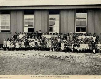 | Keywords: archives state records nsw staterecordsnsw newsouthwales blackandwhite daceyville suburb garden suburb gardensuburb sydney school children schoolchildren teachers people black and white School children, Dacey Garden suburb Dated: 06/09/1917 Digital ID: 5225_a018_a018000069 Rights: www.records.nsw.gov.au/about-us/rights-and-permissions We'd love to hear from you if you use our photos. From a series of photographs of 'Dacey Garden Suburb' (Daceyville) - a development by the Housing Board of NSW as Sydney's "first planned modern garden suburb". Daceyville was developed between 1913 and 1918 and is located in south-eastern Sydney within the municipalities of Mascot and Botany. The images in the series show scenes of the area before development, road building, the types of houses built, shops, as well as the Public School. The suburb was named after the state parliamentarian John Rowland Dacey who played a vital role in the approval of this urban development. Many other photos in our collection are available to view and browse on our website using Photo Investigator. School children, Dacey Garden suburb Dated: 06/09/1917 Digital ID: 5225_a018_a018000069 Rights: www.records.nsw.gov.au/about-us/rights-and-permissions We'd love to hear from you if you use our photos. From a series of photographs of 'Dacey Garden Suburb' (Daceyville) - a development by the Housing Board of NSW as Sydney's "first planned modern garden suburb". Daceyville was developed between 1913 and 1918 and is located in south-eastern Sydney within the municipalities of Mascot and Botany. The images in the series show scenes of the area before development, road building, the types of houses built, shops, as well as the Public School. The suburb was named after the state parliamentarian John Rowland Dacey who played a vital role in the approval of this urban development. Many other photos in our collection are available to view and browse on our website using Photo Investigator. |
