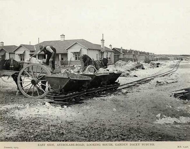 | Keywords: archives state records nsw staterecordsnsw newsouthwales blackandwhite daceyville suburb garden suburb gardensuburb sydney construction people workers public housing publichousing srnsw:series=5225 outdoor black and white East side, Astrolabe Road, looking south, Dacey Garden suburb Dated: 1913 Digital ID: 5225_a018_a018000018 Rights: www.records.nsw.gov.au/about-us/rights-and-permissions We'd love to hear from you if you use our photos. From a series of photographs of 'Dacey Garden Suburb' (Daceyville) - a development by the Housing Board of NSW as Sydney's "first planned modern garden suburb". Daceyville was developed between 1913 and 1918 and is located in south-eastern Sydney within the municipalities of Mascot and Botany. The images in the series show scenes of the area before development, road building, the types of houses built, shops, as well as the Public School. The suburb was named after the state parliamentarian John Rowland Dacey who played a vital role in the approval of this urban development. Many other photos in our collection are available to view and browse on our website using Photo Investigator. East side, Astrolabe Road, looking south, Dacey Garden suburb Dated: 1913 Digital ID: 5225_a018_a018000018 Rights: www.records.nsw.gov.au/about-us/rights-and-permissions We'd love to hear from you if you use our photos. From a series of photographs of 'Dacey Garden Suburb' (Daceyville) - a development by the Housing Board of NSW as Sydney's "first planned modern garden suburb". Daceyville was developed between 1913 and 1918 and is located in south-eastern Sydney within the municipalities of Mascot and Botany. The images in the series show scenes of the area before development, road building, the types of houses built, shops, as well as the Public School. The suburb was named after the state parliamentarian John Rowland Dacey who played a vital role in the approval of this urban development. Many other photos in our collection are available to view and browse on our website using Photo Investigator. |