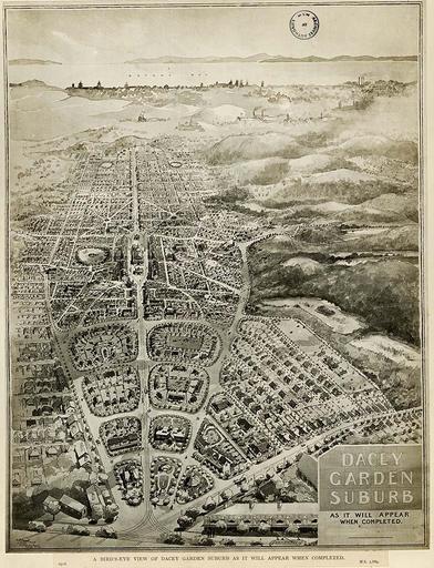 | Keywords: archives state records nsw staterecordsnsw newsouthwales blackandwhite daceyville suburb garden suburb gardensuburb sydney map sketch public housing publichousing srnsw:series=5225 photo border monochrome black and white A birds-eye view of Dacey Garden suburb as it will appear when completed Dated: 1918 Digital ID: 5225_a018_a018000001 Rights: www.records.nsw.gov.au/about-us/rights-and-permissions We'd love to hear from you if you use our photos. From a series of photographs of 'Dacey Garden Suburb' (Daceyville) - a development by the Housing Board of NSW as Sydney's "first planned modern garden suburb". Daceyville was developed between 1913 and 1918 and is located in south-eastern Sydney within the municipalities of Mascot and Botany. The images in the series show scenes of the area before development, road building, the types of houses built, shops, as well as the Public School. The suburb was named after the state parliamentarian John Rowland Dacey who played a vital role in the approval of this urban development. Many other photos in our collection are available to view and browse on our website using Photo Investigator. A birds-eye view of Dacey Garden suburb as it will appear when completed Dated: 1918 Digital ID: 5225_a018_a018000001 Rights: www.records.nsw.gov.au/about-us/rights-and-permissions We'd love to hear from you if you use our photos. From a series of photographs of 'Dacey Garden Suburb' (Daceyville) - a development by the Housing Board of NSW as Sydney's "first planned modern garden suburb". Daceyville was developed between 1913 and 1918 and is located in south-eastern Sydney within the municipalities of Mascot and Botany. The images in the series show scenes of the area before development, road building, the types of houses built, shops, as well as the Public School. The suburb was named after the state parliamentarian John Rowland Dacey who played a vital role in the approval of this urban development. Many other photos in our collection are available to view and browse on our website using Photo Investigator. |