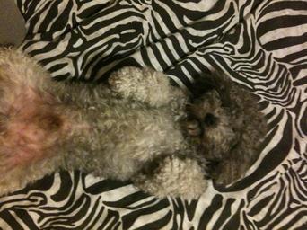 Keywords: Dadofau.JPG it La foto è stata scattata in casa mia Dado è un barbone nano di 3 anni E' una foto scattata da me Fauau Miniature Poodle Zebra patterns in art Supine dogs Low quality images of dogs