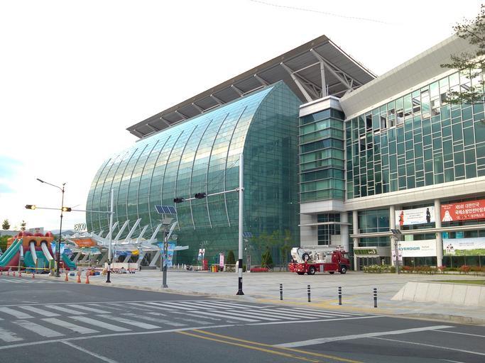 Keywords: Daegu EXCO SHall.jpg ko 구 전 컨벤션센터 전경 남쪽에 정문 광장 바 본 모습 own Syonsi 35 54 23 37 N 128 36 44 96 E alt 78_source exif_heading Daegu Exhibition and Convention Center
