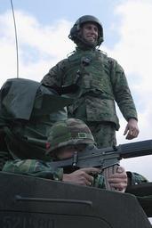 | Keywords: Daewoo K2 DM-SD-06-11423.JPEG Daewoo K2 rifle US Marine Corps USMC Lance Corporal LCPL Anthony Bittle background assigned to the 3rd Light Armored Reconnaissance Battalion LARB stands on top of his Light Armored Vehicle LAV-25 and observes as Republic of Korea KOR Marine Corporal CPL Park Sung-Wo prepares to fire his Daewoo 5 56 mm K2 assault rifle during training at Su Song Ri Republic of Korea KOR while participating in the Amphibious Ready Group Exercise 2004 ARGEX 04 The Exercise is jointly conducted between the USMC and the US Navy USN and the KOR and is designed to familiarize each Unit with the techniques tactics and procedures associated with a Special Operations Capable SOC Unit source http //www dodmedia osd mil/DVIC_View/Still_Details cfm SDAN DMSD0611423 JPGPath /Assets/Still/2006/Marines/DM-SD-06-11423 JPG PD-USGov Republic of Korea Marine Corps Daewoo K2 3rd Light Armored Reconnaissance Battalion United States |