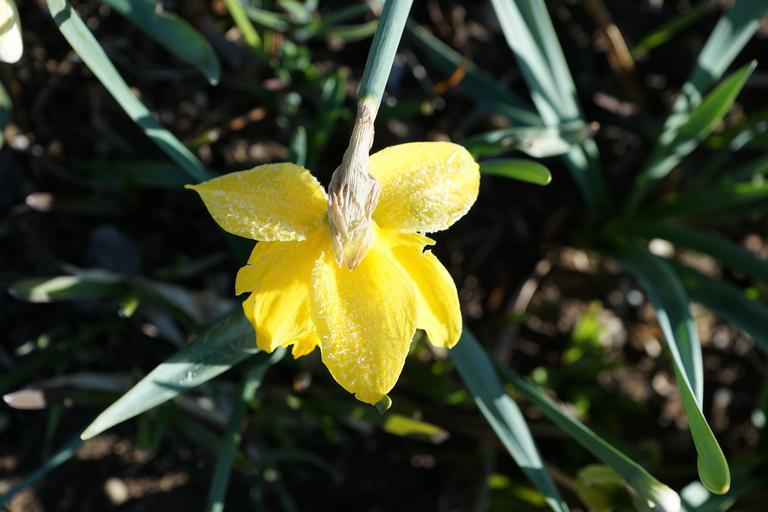 Keywords: daffodils flower yellow macro nature green spring ice iced
