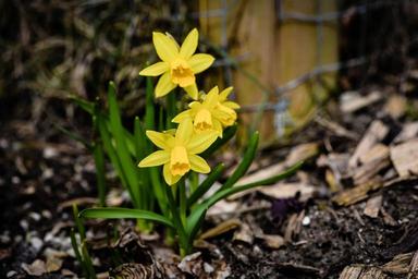 Keywords: daffodils spring flowers yellow flowers incomplete flower yellow spring garden nature macro