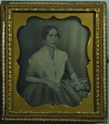| Keywords: Daguerrotipo Lucrecia 1848, autor Fermin Isaza.tif es Retrato de dama envigadeña Lucrecia Guerrero Uribe Es un daguerrotipo del artista Fermín Isaza en su gabinete fotográfico inaugurado en la ciudad de Medellín en 1848 donde realizó algunos retratos de personajes de la época con esta técnica Este daguerrotipo es una de las fotografías más antiguas de Colombia El daguerrotipo fue la primera técnica fotográfica que se conoció y fue desarrollada por Louis Daguerre a partir de las experiencias previas inéditas de Joseph Nicéphore Niépce Fue dada a conocer en 1839 por la Academia de las Ciencias Francesa Observando este daguerrotipo en particular se encuentran zonas que fueron coloreadas a mano por el artista dándole unos toque de oro sobre las joyas de la dama aretes collar prendedor del chal y anillos lo mismo que un poco al chal La placa de cobre con el recubrimiento de plata sobre la que se ha captado el retrato esta protegido con un vidrio y dentro de una caja de madera forrada en cuero La imagen puede observarse tanto en positivo como en negativo dependiendo del ángulo de visión y la dirección en que la luz se refleja en la placa Sus dimensiones exteriores son de 8 2 x 7 cms own Fermín Isaza fotografía realizada en la Biblioteca Pública Piloto de Medellín maumana 1848 Trabajo propio reconocimiento requerido mantener licencia Creative Commons CC-BY-SA-2 5 thumb LucreciaGuerreroUribe 1848 Cc-zero Daguerreotype portraits People in 1848 |