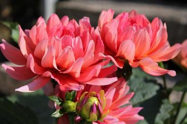 Keywords: dahlia flower blossom bloom pink salmon garden flower garden