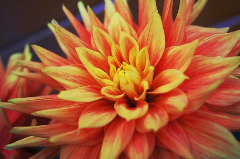 Keywords: dahlia flower colorful summer blossom petal nature bloom color spring floral plant botany bright garden fresh botanical yellow delicate freshness seasonal botanic season vibrant orange