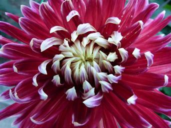 Keywords: dahlia flower head bloom blossom petals colorful red macro close-up nature outside summer spring beautiful