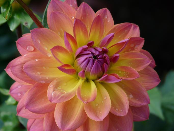 Keywords: dahlia garden pink yellow purple flower blossom bloom dahlia hortensis composites asteraceae ornamental plant simple dahlia lily dahlia colorful color