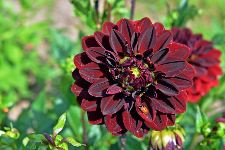 Keywords: dahlia ladybug blossom bloom flower red garden plant plant flower garden