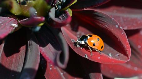 Keywords: dahlia ladybug insect blossom bloom flower red