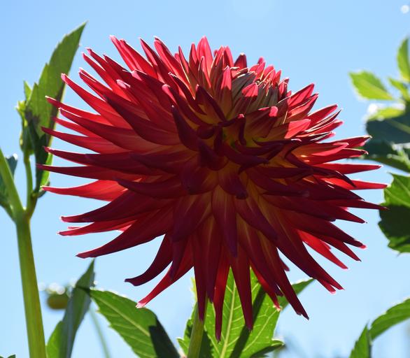 Keywords: dahlia sun red bloom flower summer rays dahlia blossom bloom nature plant