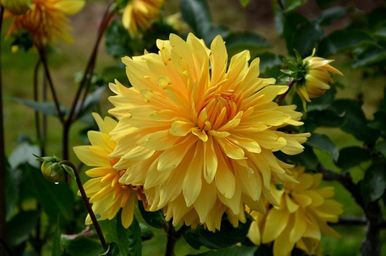 Keywords: dahlia yellow flower late summer flower garden blossom bloom