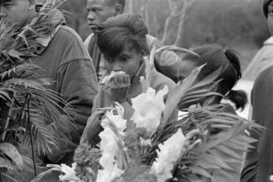 | Keywords: ms-dept-archives-history msdeptarchiveshistory moncrief mdah:sysid=94905 blackandwhite monochrome outdoor black and white Collection: Moncrief Photograph Collection Call number: PI/1994.0005 System ID: 94905. Link to the catalog Vernon Dahmer funeral, Shady Grove Baptist Church, Kelly Settlement (Hattiesburg, Miss.), afternoon of January 15, 1966. Mourners and floral tributes at graveside during funeral. Scanned as TIFF in 2005-06-21 by MDAH. Credit: Courtesy of the Mississippi Department of Archives and History. Collection: Moncrief Photograph Collection Call number: PI/1994.0005 System ID: 94905. Link to the catalog Vernon Dahmer funeral, Shady Grove Baptist Church, Kelly Settlement (Hattiesburg, Miss.), afternoon of January 15, 1966. Mourners and floral tributes at graveside during funeral. Scanned as TIFF in 2005-06-21 by MDAH. Credit: Courtesy of the Mississippi Department of Archives and History. |