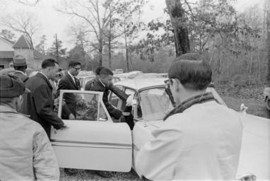 | Keywords: ms-dept-archives-history msdeptarchiveshistory moncrief mdah:sysid=94901 blackandwhite monochrome outdoor black and white Collection: Moncrief Photograph Collection Call number: PI/1994.0005 System ID: 94901. Link to the catalog Vernon Dahmer funeral, Shady Grove Baptist Church, Kelly Settlement (Hattiesburg, Miss.), afternoon of January 15, 1966. Ellie Dahmer, widow of slain civil rights leader Vernon Dahmer, assisted into car by family members. Scanned as TIFF in 2005-06-21 by MDAH. Credit: Courtesy of the Mississippi Department of Archives and History. Collection: Moncrief Photograph Collection Call number: PI/1994.0005 System ID: 94901. Link to the catalog Vernon Dahmer funeral, Shady Grove Baptist Church, Kelly Settlement (Hattiesburg, Miss.), afternoon of January 15, 1966. Ellie Dahmer, widow of slain civil rights leader Vernon Dahmer, assisted into car by family members. Scanned as TIFF in 2005-06-21 by MDAH. Credit: Courtesy of the Mississippi Department of Archives and History. |