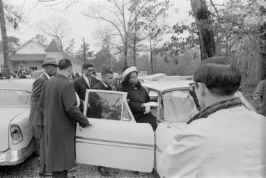 | Keywords: ms-dept-archives-history msdeptarchiveshistory moncrief mdah:sysid=94900 blackandwhite monochrome outdoor black and white Collection: Moncrief Photograph Collection Call number: PI/1994.0005 System ID: 94900. Link to the catalog Vernon Dahmer funeral, Shady Grove Baptist Church, Kelly Settlement (Hattiesburg, Miss.), afternoon of January 15, 1966. Ellie Dahmer, widow of slain civil rights leader Vernon Dahmer, assisted into car by family members. Scanned as TIFF in 2005-06-21 by MDAH. Credit: Courtesy of the Mississippi Department of Archives and History. Collection: Moncrief Photograph Collection Call number: PI/1994.0005 System ID: 94900. Link to the catalog Vernon Dahmer funeral, Shady Grove Baptist Church, Kelly Settlement (Hattiesburg, Miss.), afternoon of January 15, 1966. Ellie Dahmer, widow of slain civil rights leader Vernon Dahmer, assisted into car by family members. Scanned as TIFF in 2005-06-21 by MDAH. Credit: Courtesy of the Mississippi Department of Archives and History. |