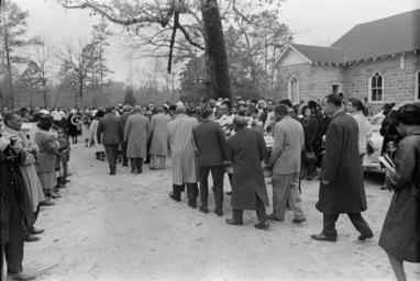 | Keywords: ms-dept-archives-history msdeptarchiveshistory moncrief mdah:sysid=94897 blackandwhite monochrome outdoor black and white Collection: Moncrief Photograph Collection Call number: PI/1994.0005 System ID: 94897. Link to the catalog Vernon Dahmer funeral, Shady Grove Baptist Church, Kelly Settlement (Hattiesburg, Miss.), afternoon of January 15, 1966. Casket carried to cemetery next to church. Scanned as TIFF in 2005-06-21 by MDAH. Credit: Courtesy of the Mississippi Department of Archives and History. Collection: Moncrief Photograph Collection Call number: PI/1994.0005 System ID: 94897. Link to the catalog Vernon Dahmer funeral, Shady Grove Baptist Church, Kelly Settlement (Hattiesburg, Miss.), afternoon of January 15, 1966. Casket carried to cemetery next to church. Scanned as TIFF in 2005-06-21 by MDAH. Credit: Courtesy of the Mississippi Department of Archives and History. |