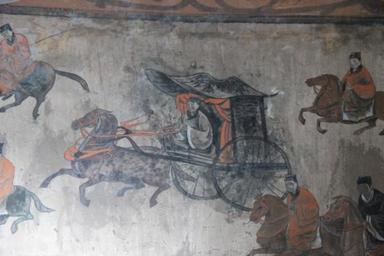 | Keywords: Dahuting Tomb mural, cavalry and chariots, Eastern Han.jpg en The Dahuting Tomb Chinese 打虎亭汉墓 Pinyin Dahuting Han mu; Wade-Giles Tahut'ing Han mu of the late Eastern Han Dynasty 25-220 AD located in Zhengzhou Henan province China was excavated in 1960-1961 and contains vault-arched burial chambers decorated with murals showing scenes of daily life <br>For further information see the Baidu article in Chinese http //baike baidu com/view/230941 htm 打虎亭汉墓 <br>http //blog sina com cn/s/blog_53928e100102voyg html Click here for more pictures and a step-by-step walkthrough of the tomb from the outside down a stairwell and through the vaulted burial chambers Late 2nd early 3rd century AD http //news sina com cn/c/2004-08-25/08044129741 shtml News sina com cn<br> http //www zzldcn cn/Panoramic/Pages/91_1621 html Zzldcn cn National Cultural Information Resources Sharing Project Zhengzhou Branch<br> http //bbs photofans cn/blog php mod view_mob id 56507 Bbs photofans cn<br> https //www synotrip com/henan-province/sky-han/dahuting-han-dynasty-tombs Synotrip com Henan Province<br> https //www tripadvisor com/LocationPhotoDirectLink-g1152494-d1834409-i158766092-Dahuting_Tomb_of_Han_Dynasty-Xinmi_Henan html Tripadvisor com<br> Ancient Chinese artists of the late Eastern Han period other versions Custom license marker 2016 10 11 PD-Art-100 Dahuting Tomb murals Cavalry in art Chariots in art |