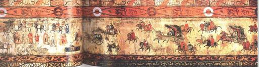 | Keywords: Dahuting tomb mural of chariots and cavalry, Eastern Han Dynasty.jpg en The Dahuting Tomb Chinese 打虎亭汉墓 Pinyin Dahuting Han mu; Wade-Giles Tahut'ing Han mu of the late Eastern Han Dynasty 25-220 AD located in Zhengzhou Henan province China was excavated in 1960-1961 and contains vault-arched burial chambers decorated with murals showing scenes of daily life <br>For further information see the Baidu article in Chinese http //baike baidu com/view/230941 htm 打虎亭汉墓 <br>http //blog sina com cn/s/blog_53928e100102voyg html Click here for more pictures and a step-by-step walkthrough of the tomb from the outside down a stairwell and through the vaulted burial chambers Late 2nd early 3rd century AD http //news sina com cn/c/2004-08-25/08044129741 shtml News sina com cn<br> http //www zzldcn cn/Panoramic/Pages/91_1621 html Zzldcn cn National Cultural Information Resources Sharing Project Zhengzhou Branch<br> http //bbs photofans cn/blog php mod view_mob id 56507 Bbs photofans cn<br> https //www synotrip com/henan-province/sky-han/dahuting-han-dynasty-tombs Synotrip com Henan Province<br> https //www tripadvisor com/LocationPhotoDirectLink-g1152494-d1834409-i158766092-Dahuting_Tomb_of_Han_Dynasty-Xinmi_Henan html Tripadvisor com<br> Ancient Chinese artists of the late Eastern Han period other versions Custom license marker 2016 10 11 PD-Art-100 Dahuting Tomb murals Chariots in art Cavalry in paintings Han Dynasty Tomb Painting |