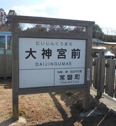 Keywords: Daijingu-mae.jpg en This is a monument of station sign ja 旧大神宮前駅の駅名標型モニュメント Own Miyuki Meinaka 2009-08-14 Public domain Train stations in Ise Mie