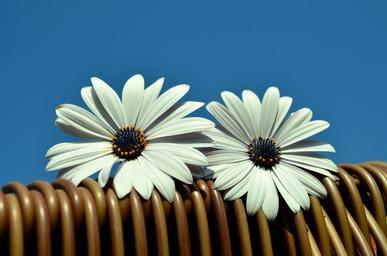 Keywords: daisies blue sky beach chair bornholm daisies summer blue blossom bloom flower white