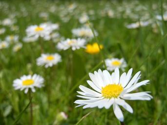 Keywords: daisies daisy flower macro white spring green lawn