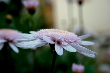 Keywords: daisy flower bloom pink upright open flat dainty delicate petals light plant