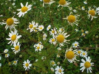 Keywords: daisy flowers daisies white petals yellow centre green leaves grass background flowering plants wildflowers ornamental decorative fleurs floral gardens fields