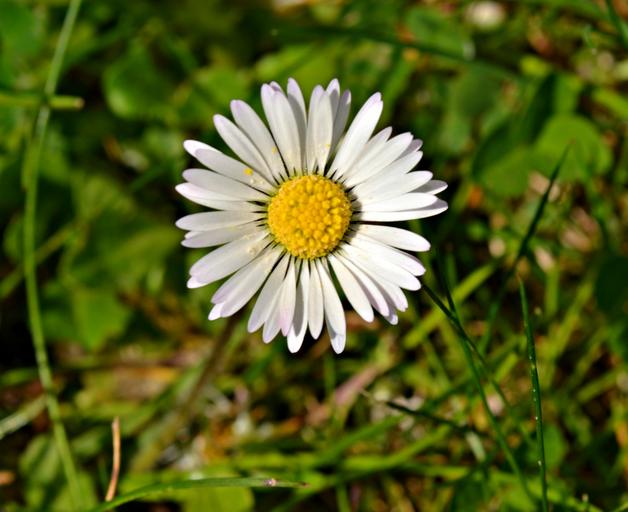Keywords: daisy flowers white white flowers nature spring green bloom close up petals bokeh garden grass sunny