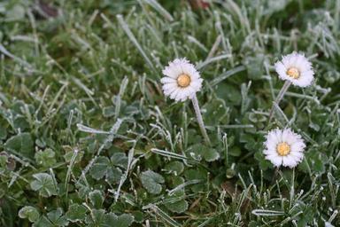 Keywords: daisy ice meadow blades of grass winter hoarfrost